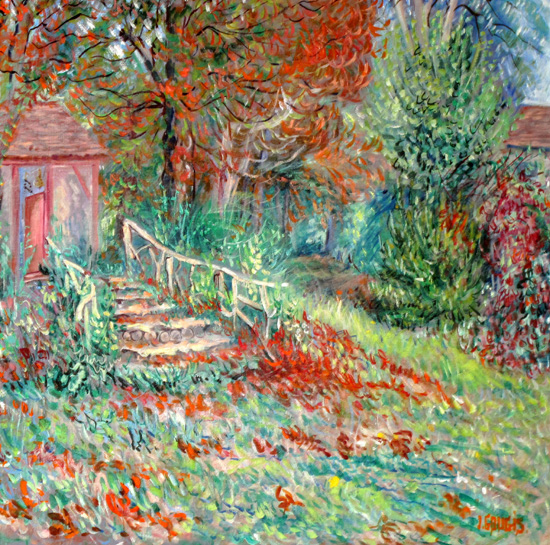 La Réserve des Moines, rue Claude Monet, le Prieuré, Giverny huile sur toile, 73x60 circa 1987-88 |