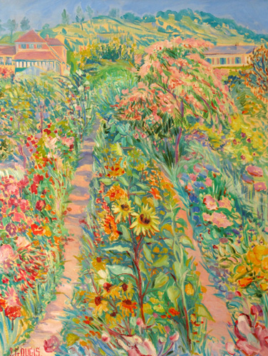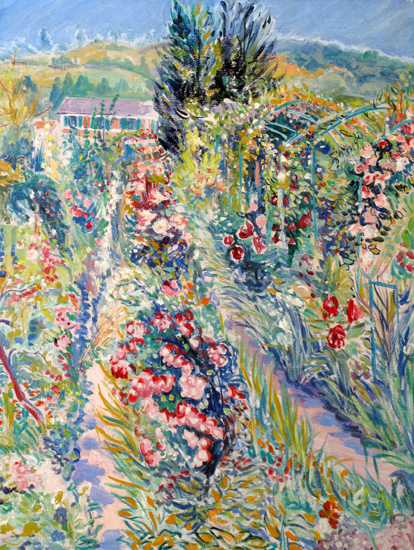Hôtel Baudy, Giverny, Les jardins avec l'atelier huile sur toile, 73x60 circa 1987-88 |